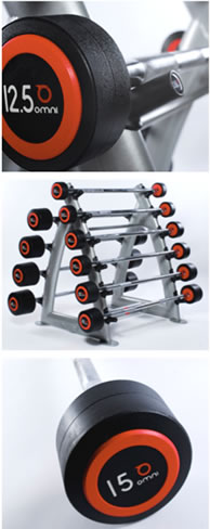 Omni Heavyduty PU Dumbbell Pairs Set Range - Top quality PU Dumbbells on Stylish and Durable Racks |
